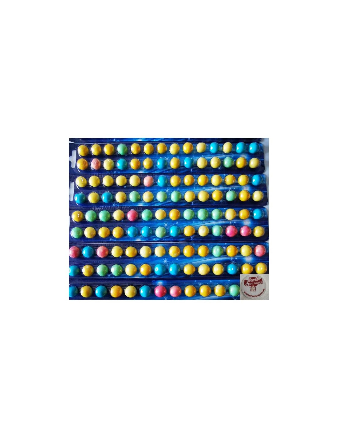 Pour commencer, ce sont des petites boules luisantes de chewing-gum de différentes couleurs, d'un diamètre de 1,5 centimètre, leurs textures douces sont agréables et leurs arômes fruits de poire, d’orange, de framboise, de citron ou d’ananas se répandront dans votre bouche pour votre plus grand bonheur. D'abord, les célébrissimes sont les uniques billes de gomme à mâcher de plusieurs couleurs sont les classiques de la marque Casa del dolce. Enfin, comment ne pas craquer pour cette barre de vingt-huit boules de chewing-gum à petit prix. Finalement, notre site web de la boutique en ligne réunit toutes les confiseries pour votre plaisir gustatif et les saveurs de nos bonbons régaleront vos papilles. Découvrez ou redécouvrez vos confiseries préférées parmi un large choix de produits disponible