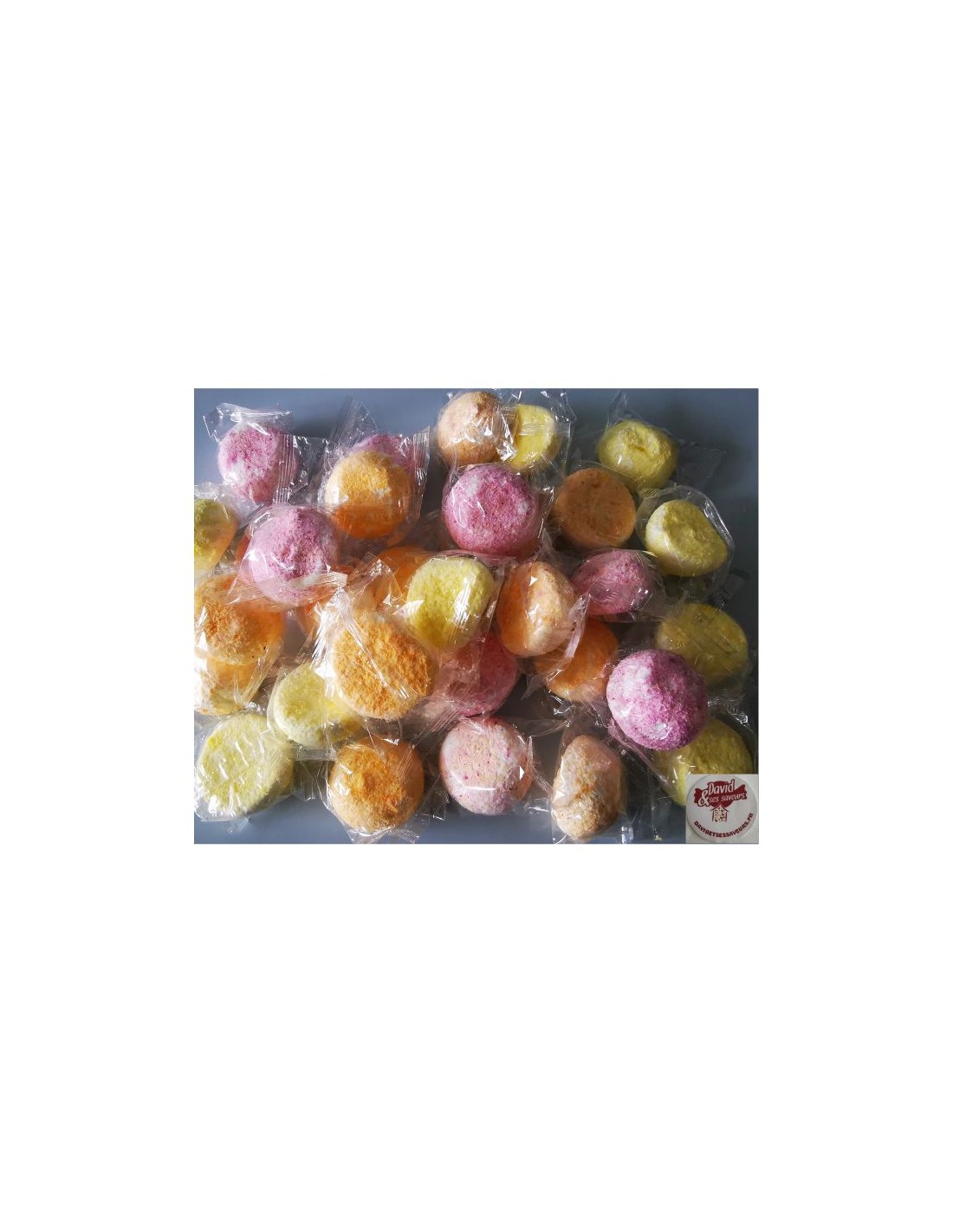 Tout d'abord, la boule coco meringue est recouverte de noix de coco râpé de couleurs, rose, jaune ou orange. Elle est emballée individuellement pour conserver toute sa fraîcheur. Cette friandise rétro vous est proposée dans le site web de la boutique en ligne https://www.davidetsessaveurs.fr.