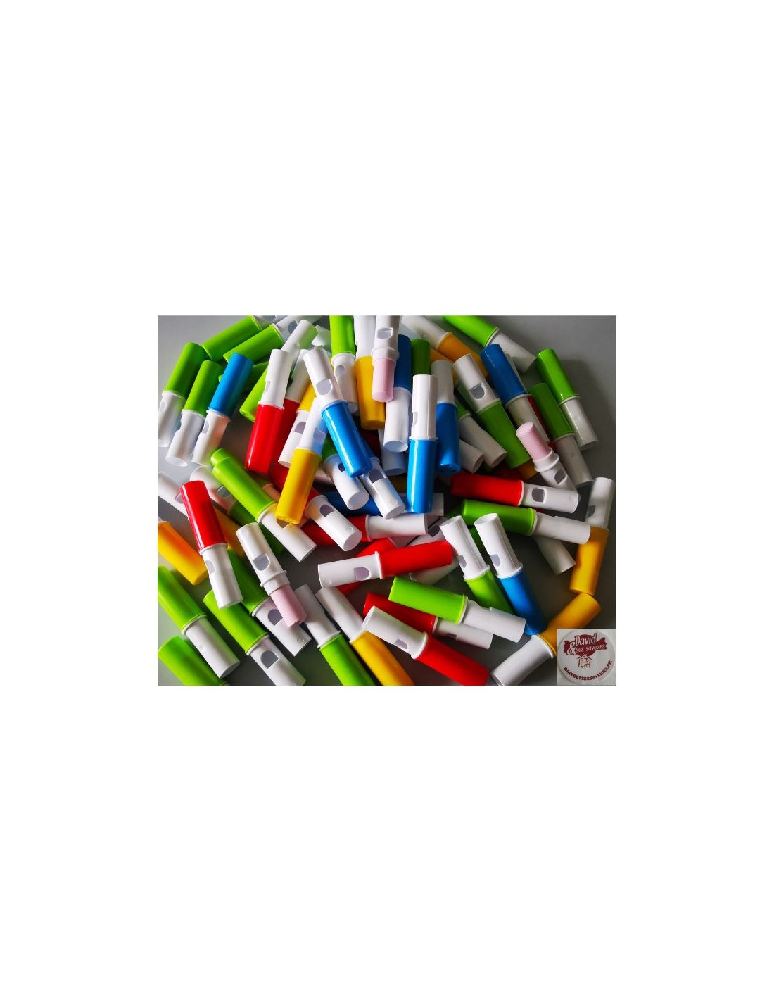 Pour commencer, un sifflet coloré est une friandise originale qui se transforme en jouet… Faite un maximum de bruit avec ces bonbons sifflets !!! En enlevant le bouchon de couleur, on découvre un bonbon en forme de craie. La sucrerie est dans un sifflet en plastique. Le sifflet des années 80 est de retour, dans la catégorie confiserie ludique d'époque.