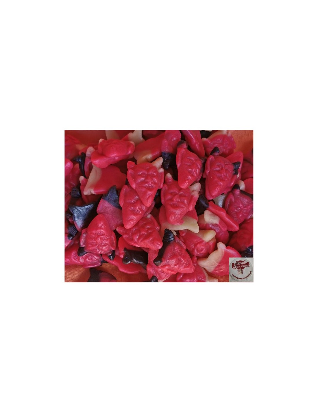 D'abord, le diable rouge est un bonbon gélifié, gomme molle et moelleux, au délicieux fourrage de fruits faciles à manger en forme de tête de diable. Idéal pour la fête d’Halloween. Vous le trouverez dans le site web de la boutique en ligne : https://www.davidetsessaveurs.fr.
