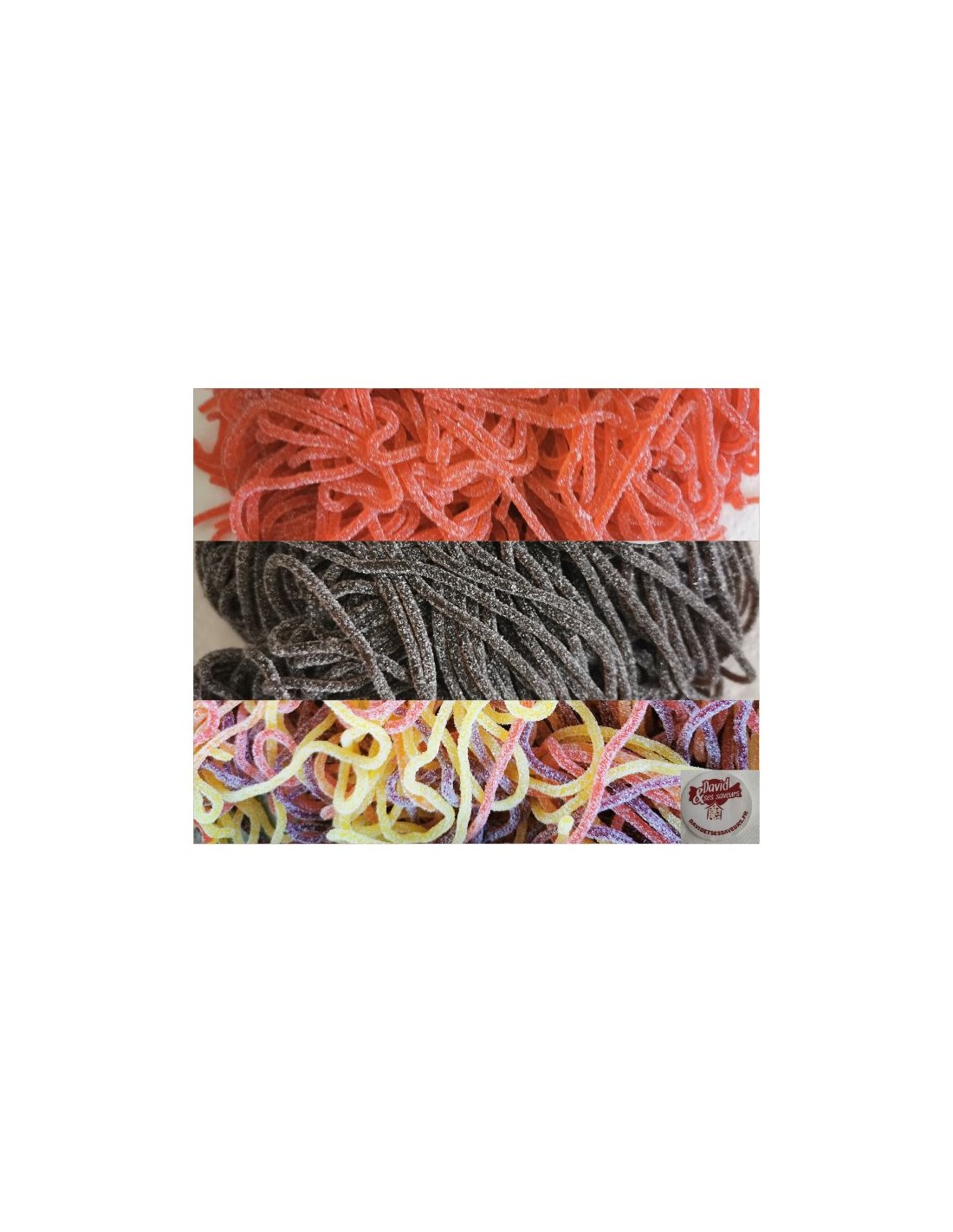 Pour commencer, c’est une friandise originale en forme de fil, ficelle, appelé aussi lacet, lasso ou spaghetti recouvert d’une fine couche de sucre qui pique, il y en a pour tous les goûts. Venez les découvrir et n’hésitez pas à commander dès maintenant dans le site web de la boutique en ligne : https://www.davidetsessaveurs.fr.