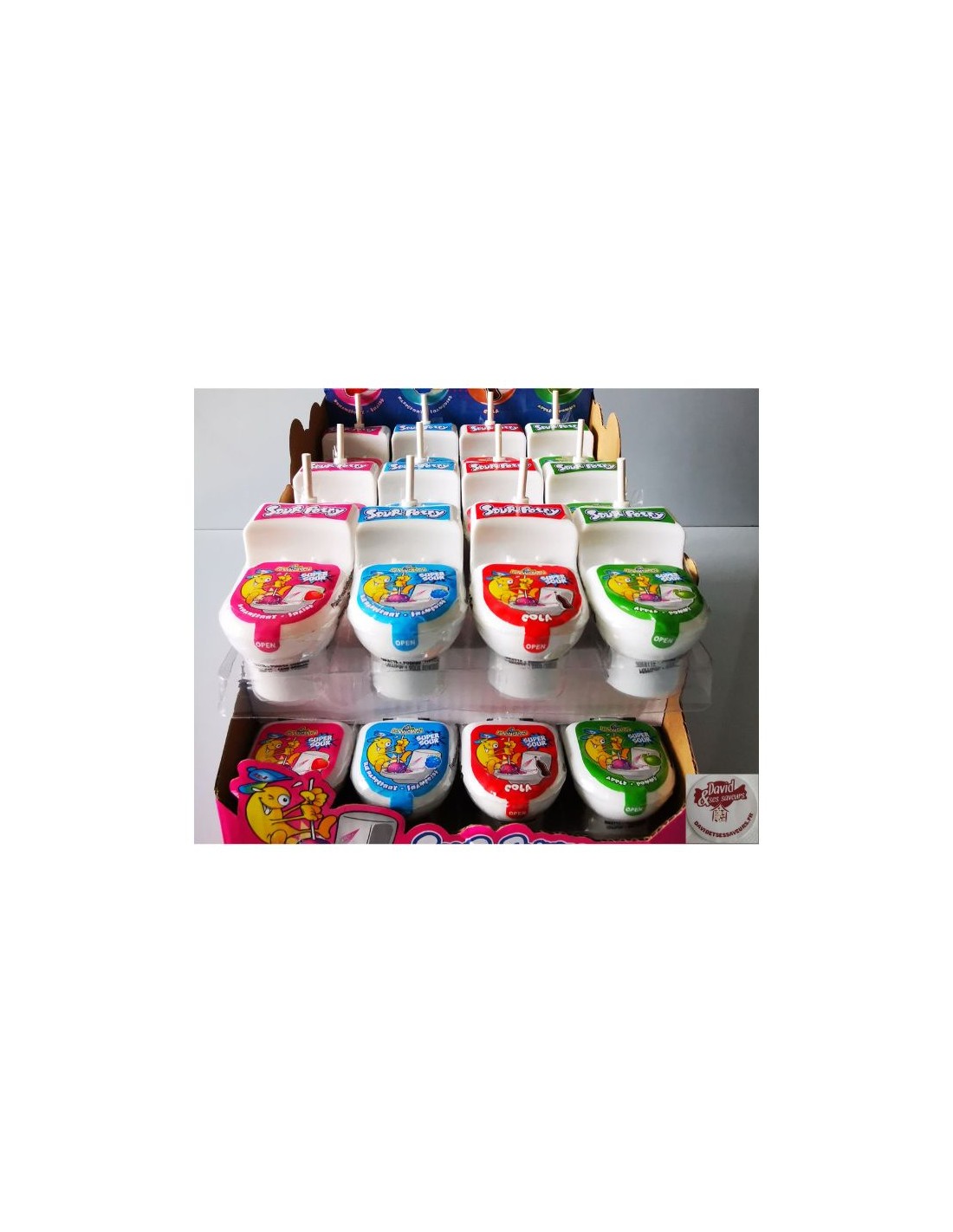 Pour commencer, sour potty est une confiserie qui fait sourire. C'est un mini toilette contenant une délicieuse poudre acidulée au goût fruité et une sucette à la place de la brosse. Tout d'abord, soulevez le couvercle du WC et trempez la sucette dans la poudre acidulée : un vrai régal !!! Aux arômes de fruits, de fraise, de pomme, de framboise ou de cola, les enfants l'adorent grâce à son goût, mais également pour la poudre très acidulée. Il s'agit d'une confiserie mangée par les petits et les grands. Finalement nous les adorons peu importe leurs saveurs. Venez la découvrir et n'hésitez pas à commander dès maintenant dans le site web de la boutique en ligne : http://www.davidetsessaveurs.fr.