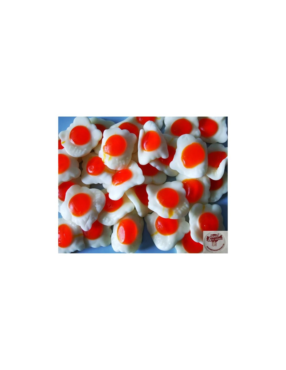 Pour commencer, le bonbon œuf sur le plat géant se décline en deux textures le blanc moelleux et sucré, le jaune pour offrir le maximum de plaisir, chaleureux et gourmand. D’abord, cette friandise a texture délicieuse en gélatine en pâte aérée blanche fondante qui mesure près de 6 centimètres de diamètre et le jaune d’œuf gélifié onctueux qui mesure près de 3 centimètres de diamètre et pèse 33 grammes. Toutefois, les gourmands seront ravis de trouver tous les bonbons sans gluten de la marque Fini et bien d'autres grandes marques dans notre boutique en ligne : https://www.davidetsessaveurs.fr. Finalement, Régalez vous avec ces friandises dans le thème de votre fête : Pour un candy bar à bonbons exclusivement jaune comme le soleil et la gaieté de vie.